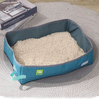 Vous souvenez-vous de cette fois où vous avez dû improviser une solution de fortune pour votre chat en vacances? Notre bac à litière chat pliable élimine ce stress. Son tissu imperméable turquoise avec intérieur gris foncé ne retient pas les odeurs et se nettoie en un clin d'œil. La surface lisse se rince facilement, même en déplacement.